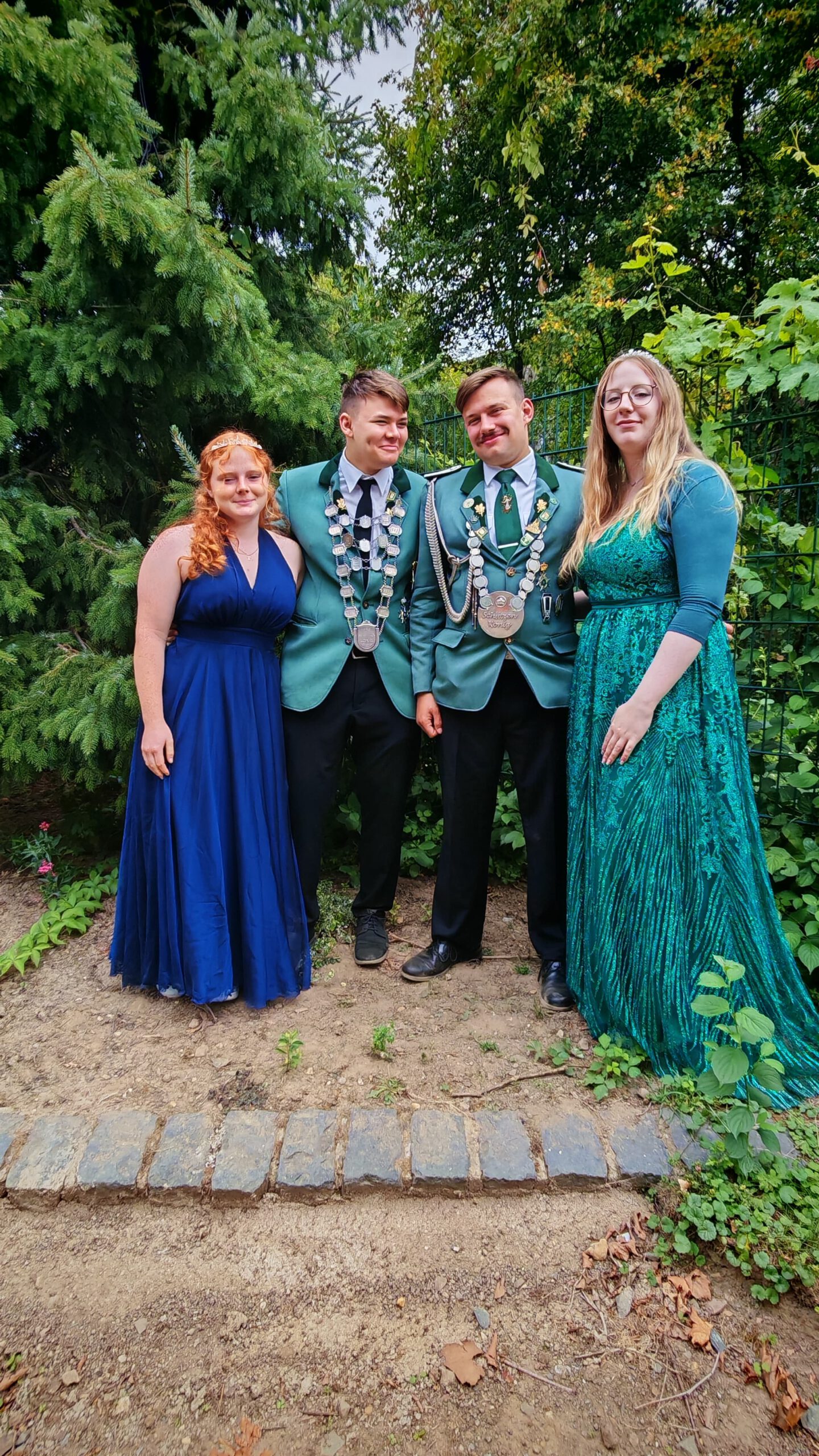 Jungschützenkönig Tim Pesch mit Lena Wehnert und Schützenkönig Jan-Niklas Pesch mit Nina Grannemann